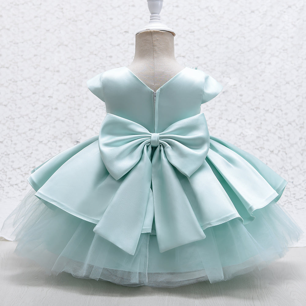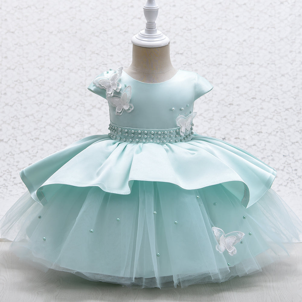 Beautiful blue green coloured multi frill flower girl dress for beautiful princess