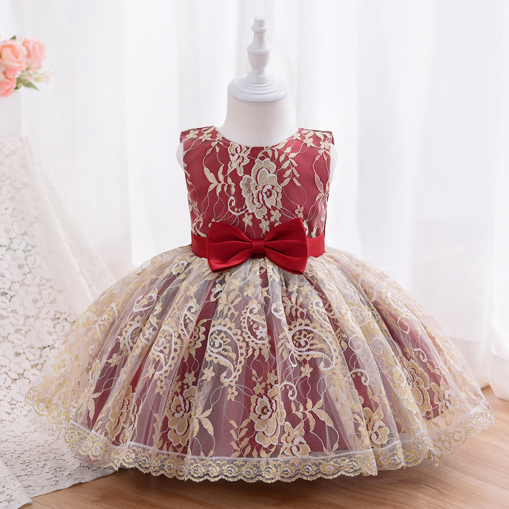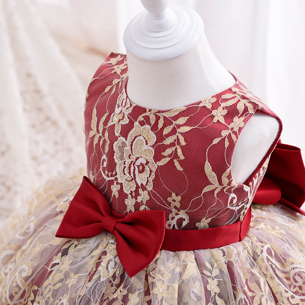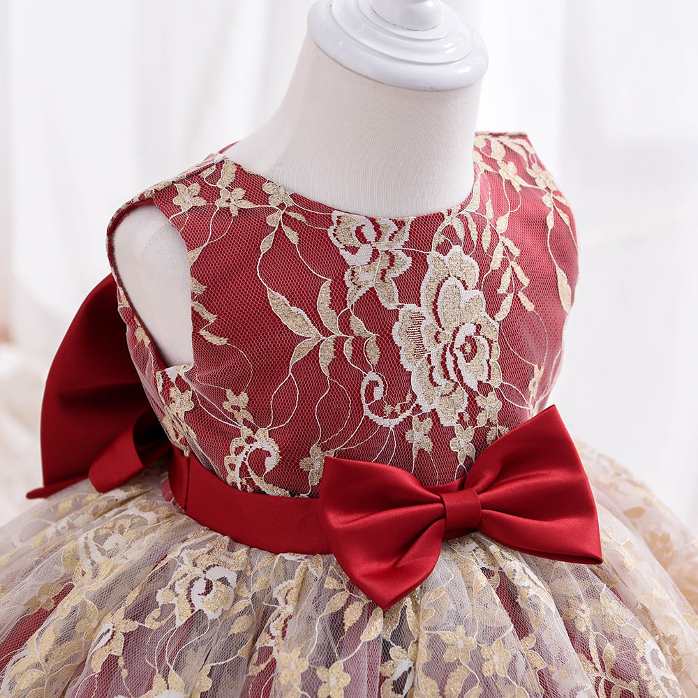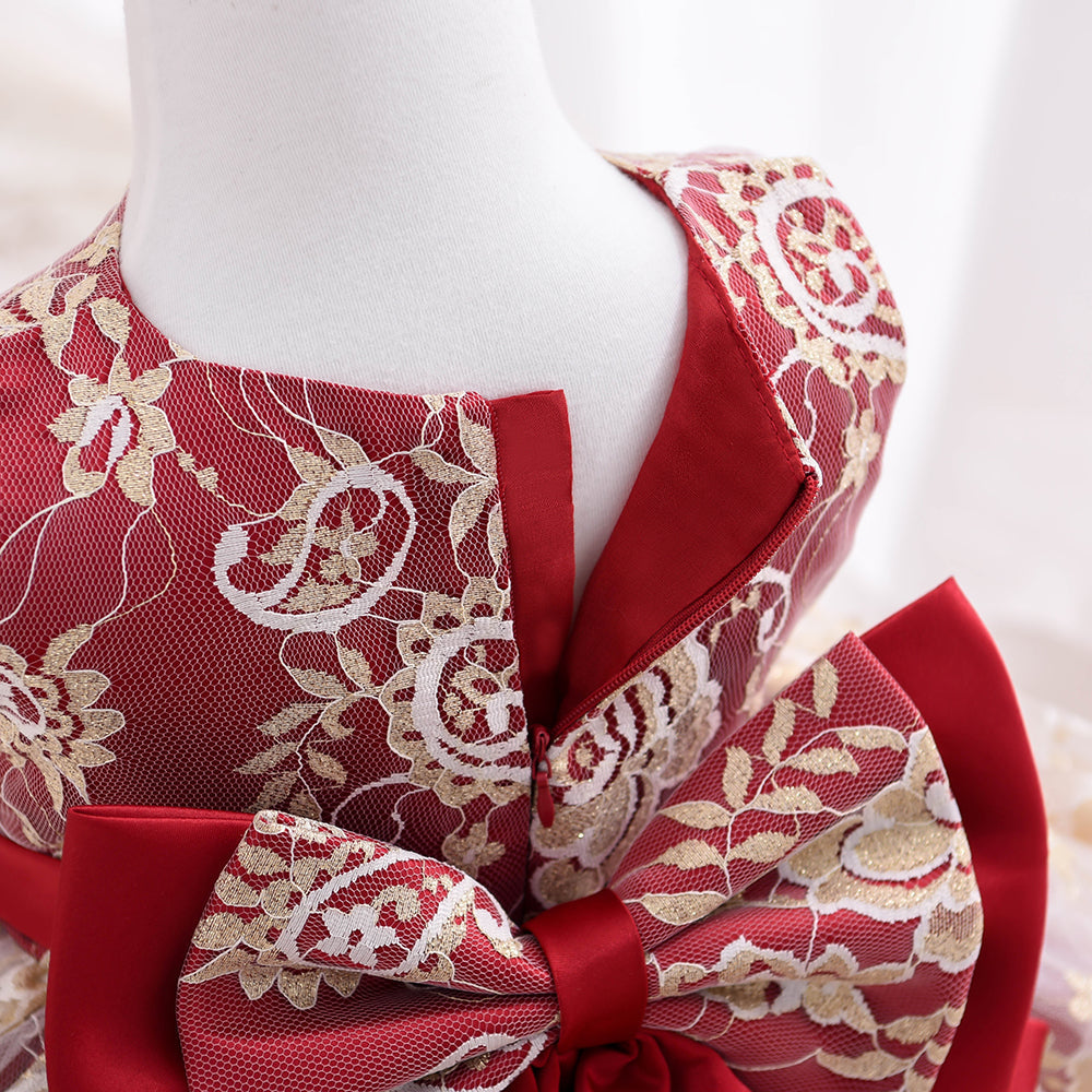 Beautiful golden red coloured multi frill flower girl dress for beautiful princess