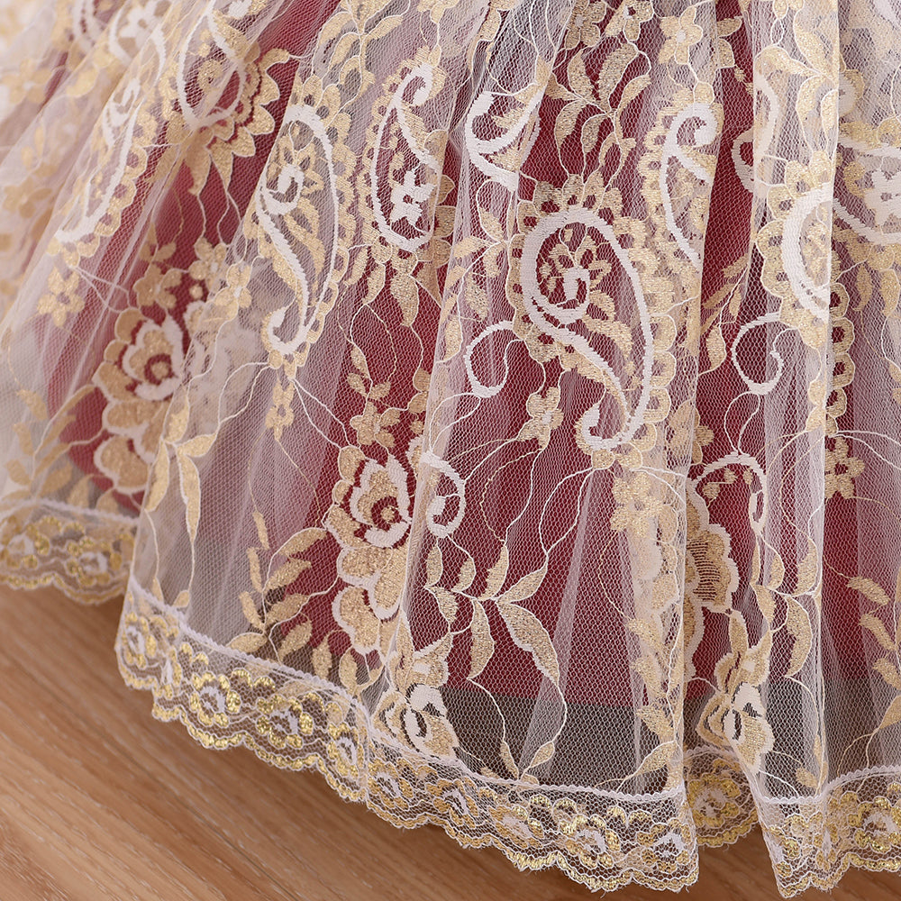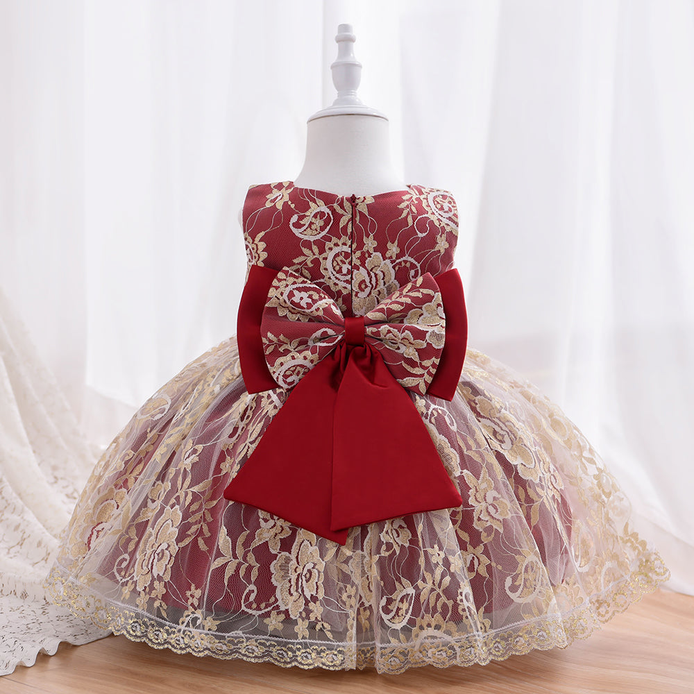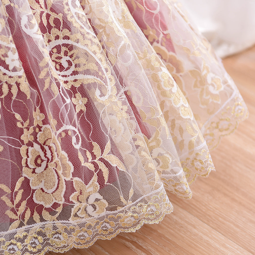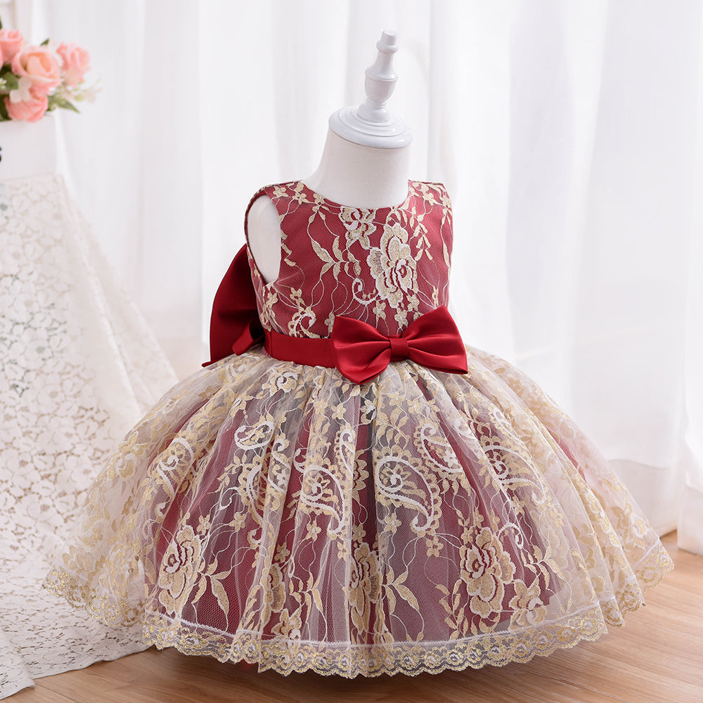 Beautiful golden red coloured multi frill flower girl dress for beautiful princess