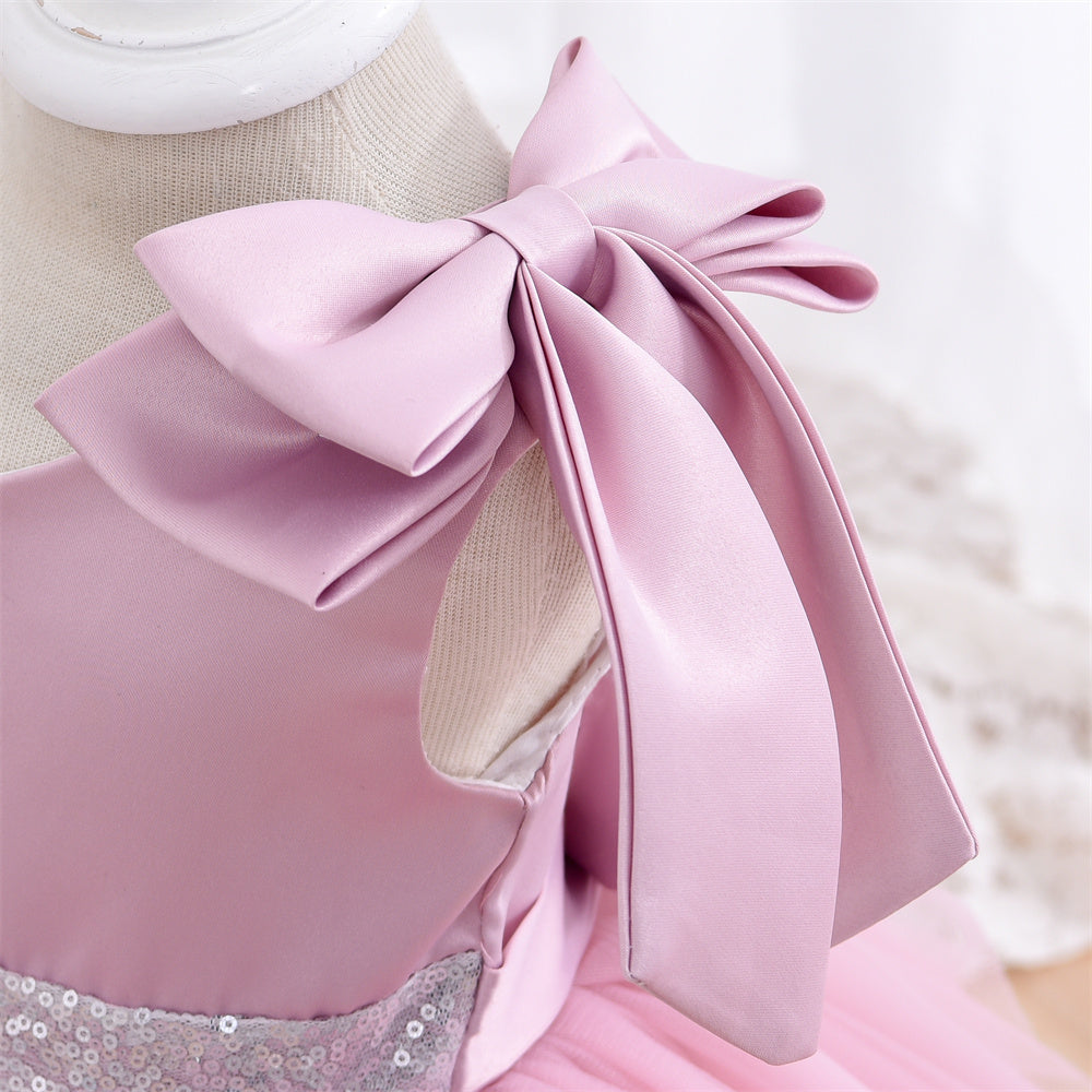 Beautiful pink coloured multi frill flower girl dress for beautiful princess