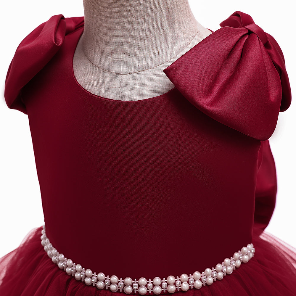Front of the dress is decorated with beautiful bead work and bow at back and shoulders