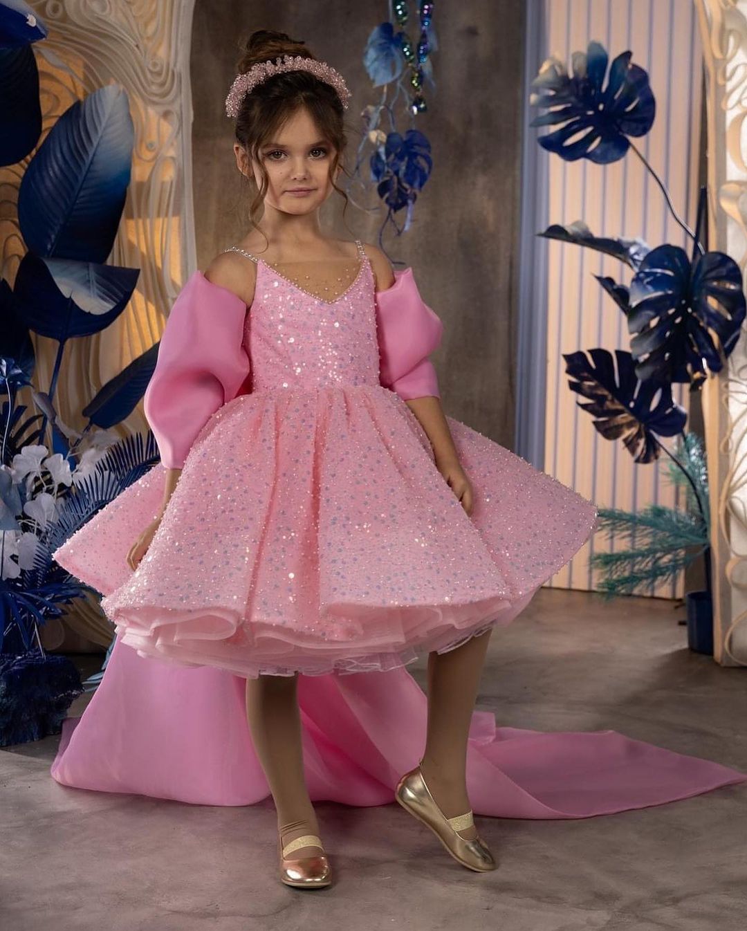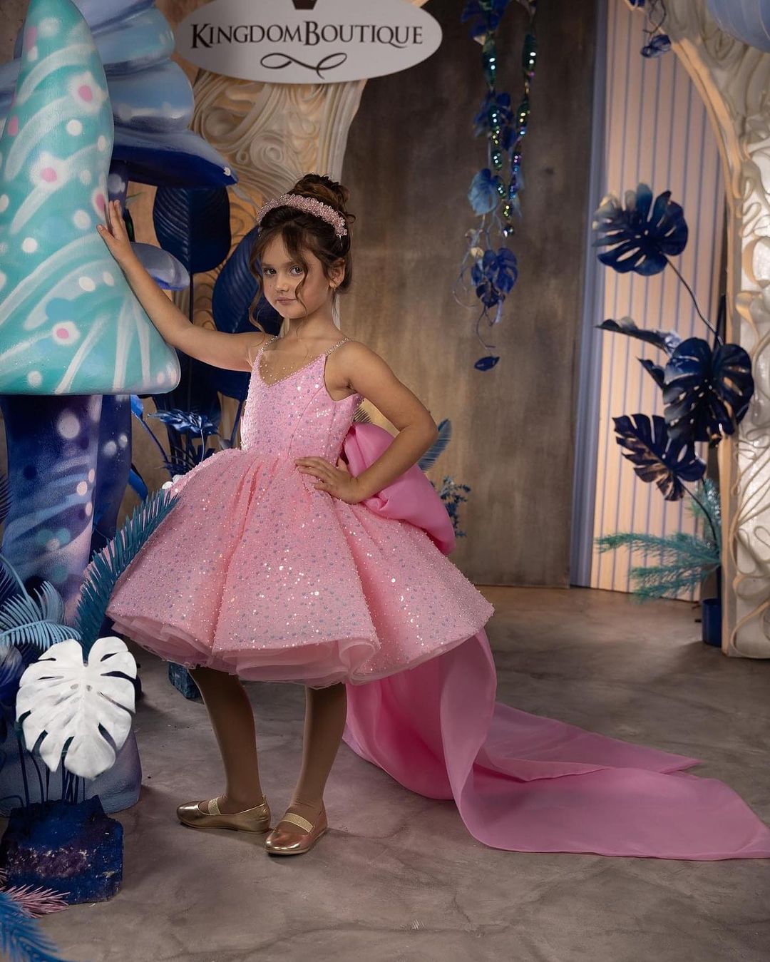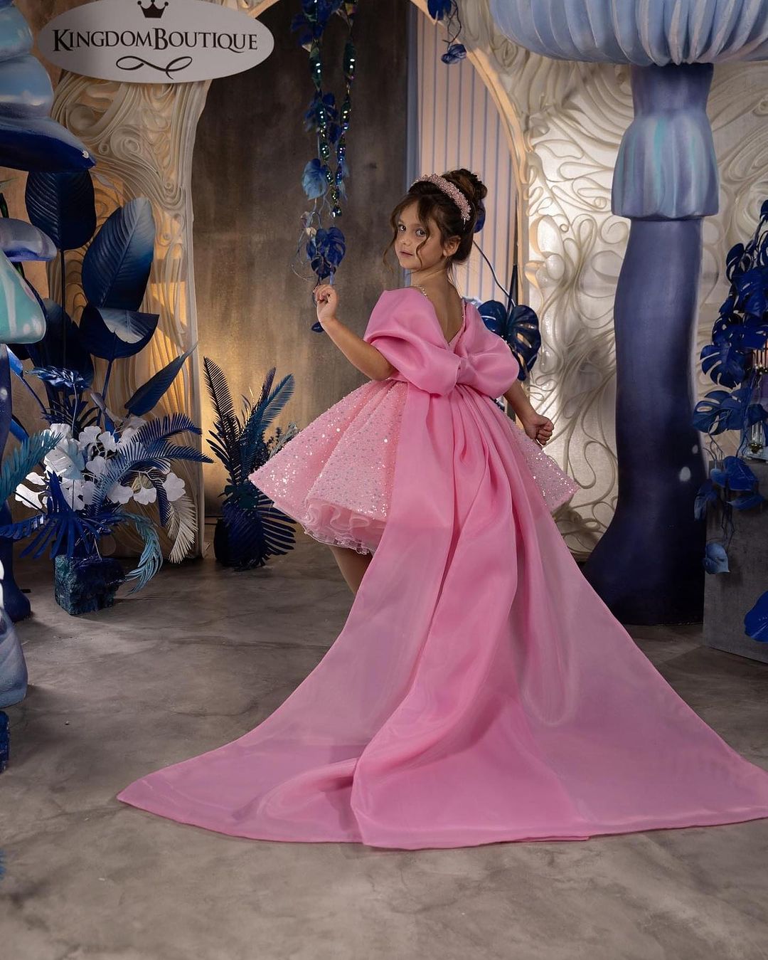This handmade bow trail dress is sure to be the perfect choice for your baby's upcoming birthday celebration.