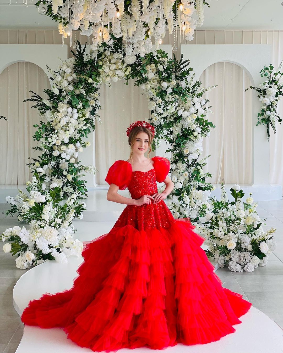 This handmade high low styled trail dress is sure to be the perfect choice for your baby's upcoming birthday celebration.
