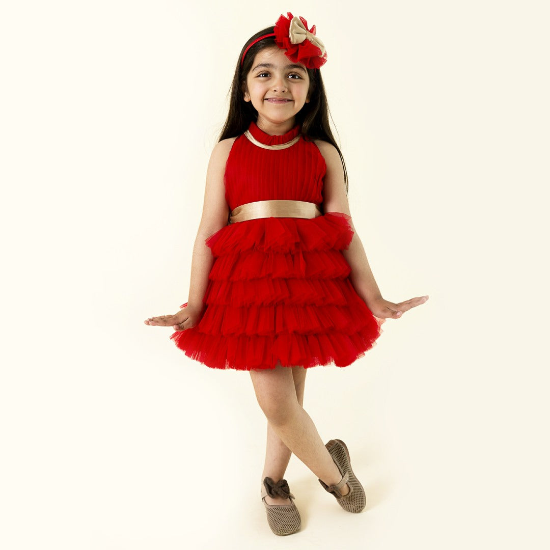 This dress is made of soft satin and net. Multiple layers of clothing is provided in this dress to provide natural balloon effect