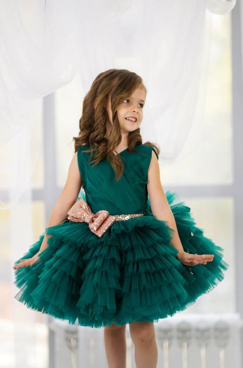 Beautiful dark green coloured flower girl dress for beautiful princess