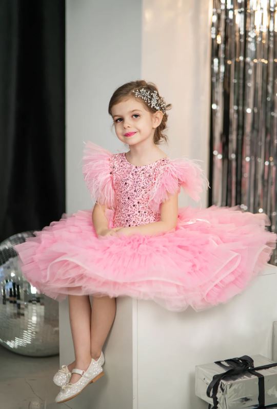 This dress is made of soft satin and net. Multiple layers of clothing is provided in this dress to provide natural balloon effect