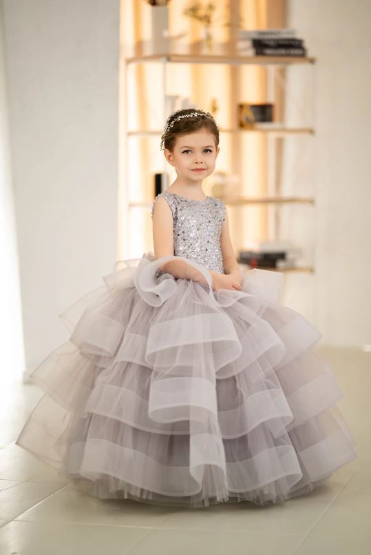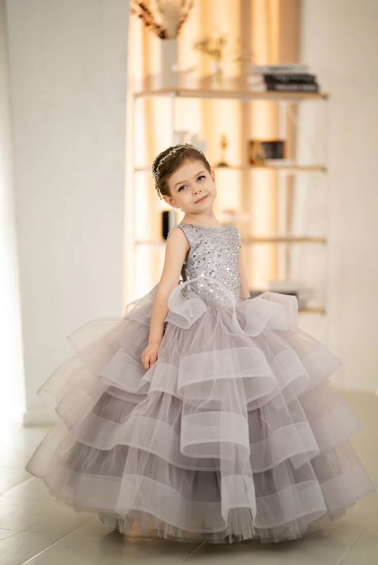 Beautiful grey coloured flower girl dress for beautiful princess