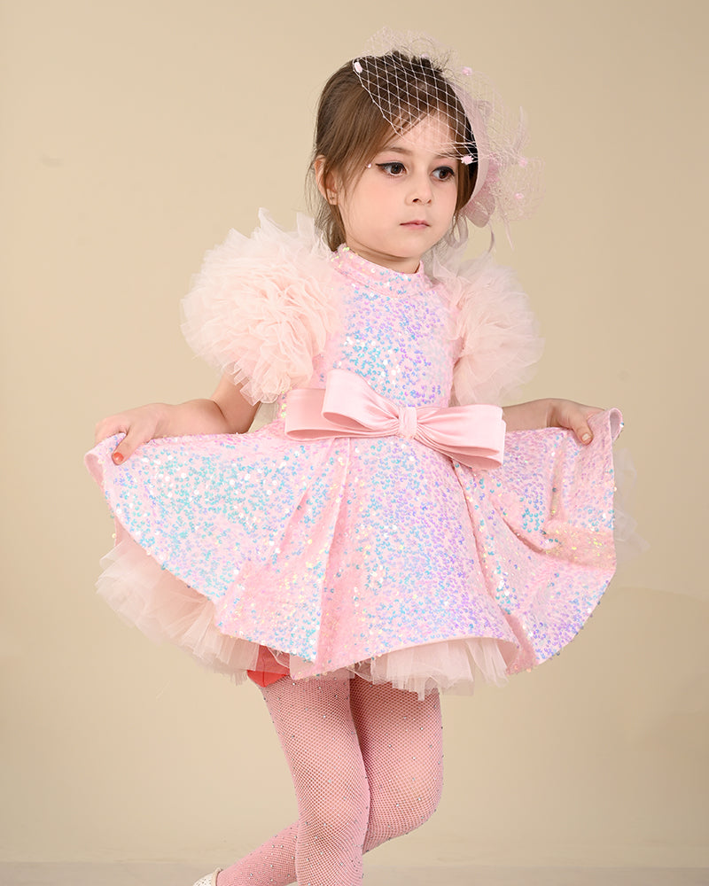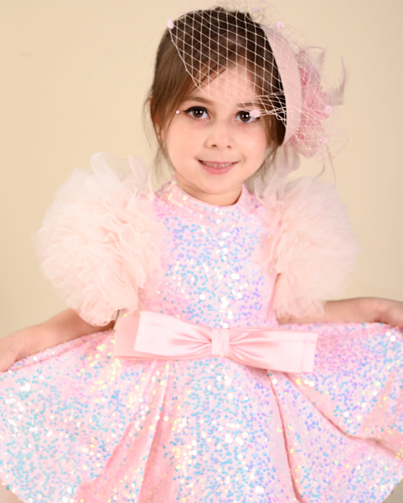 Beautiful light peach pink coloured flower girl dress for beautiful princess