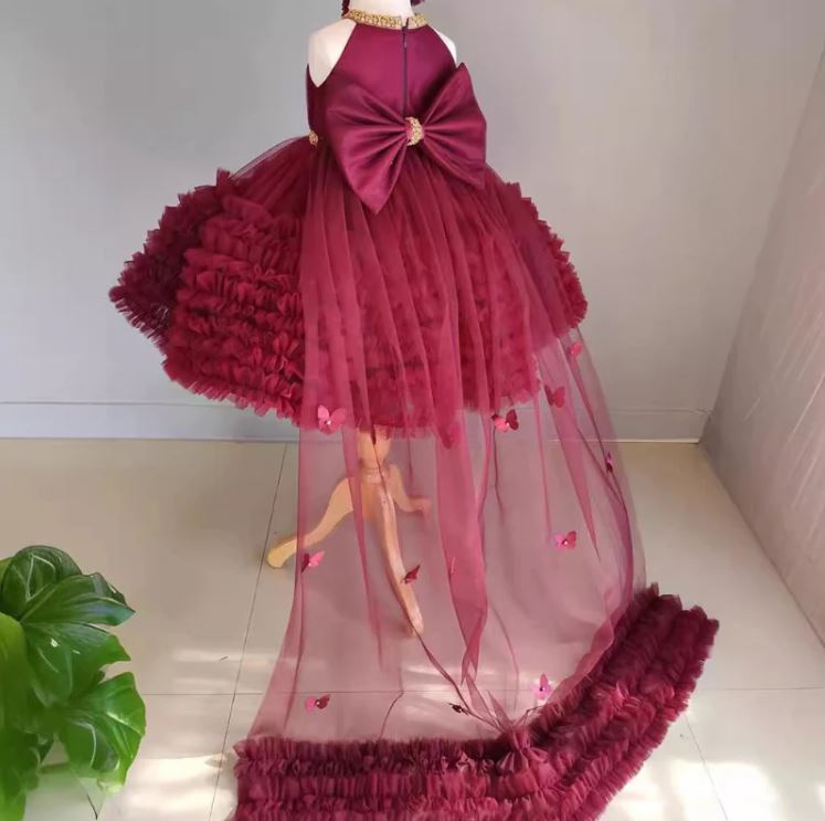 Beautiful maroon coloured flower girl dress for beautiful princess