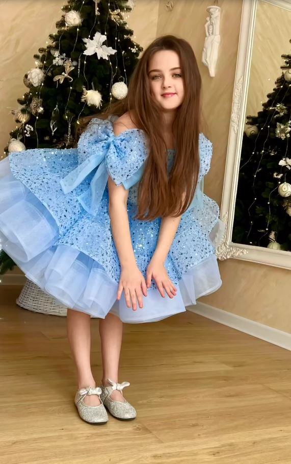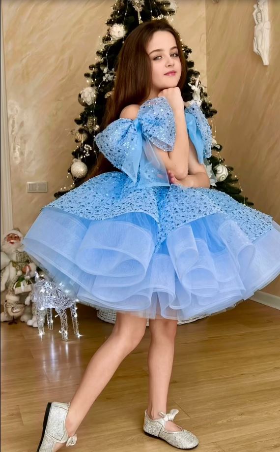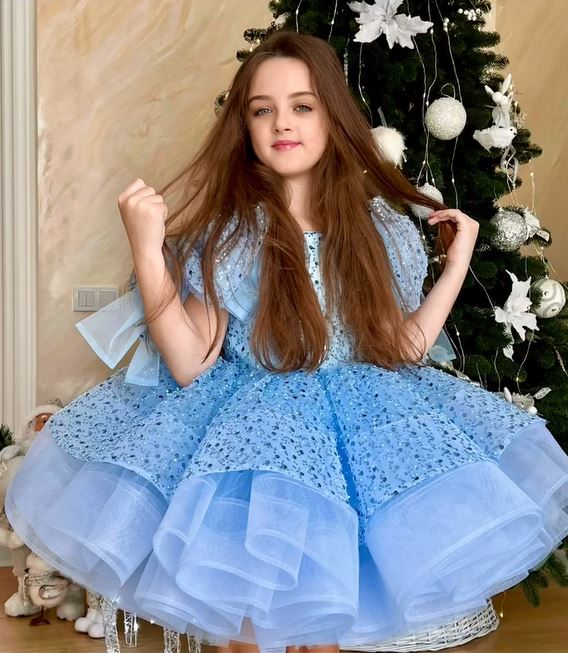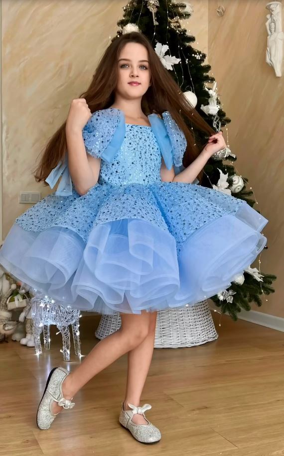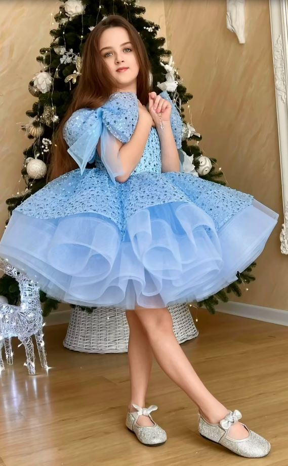 Beautiful Elsa Blue coloured flower girl dress for beautiful princess