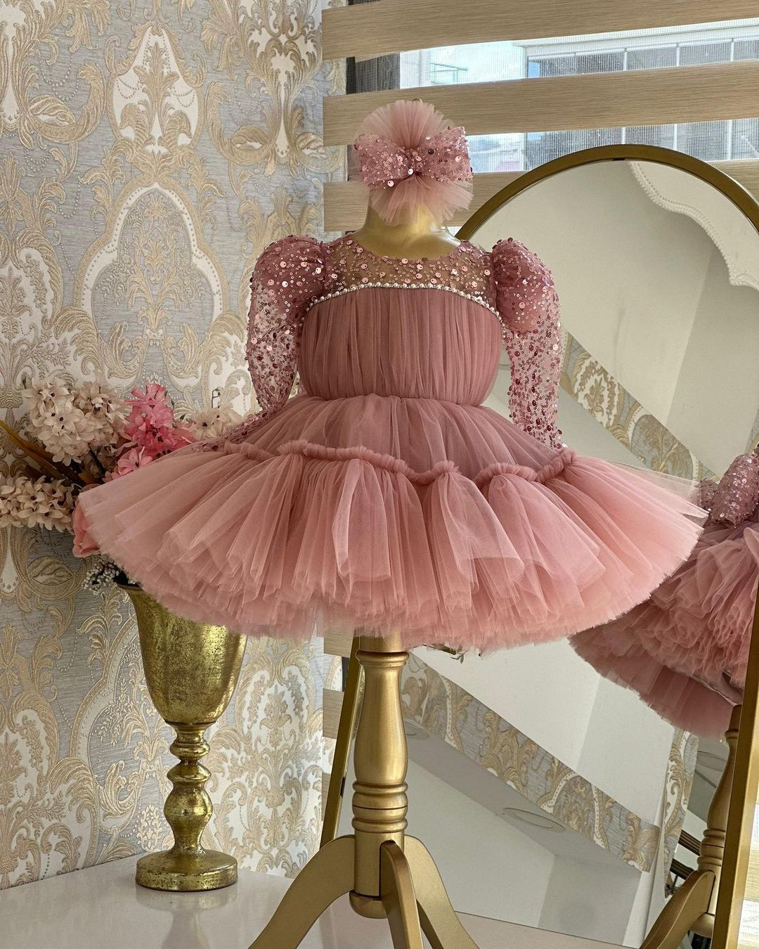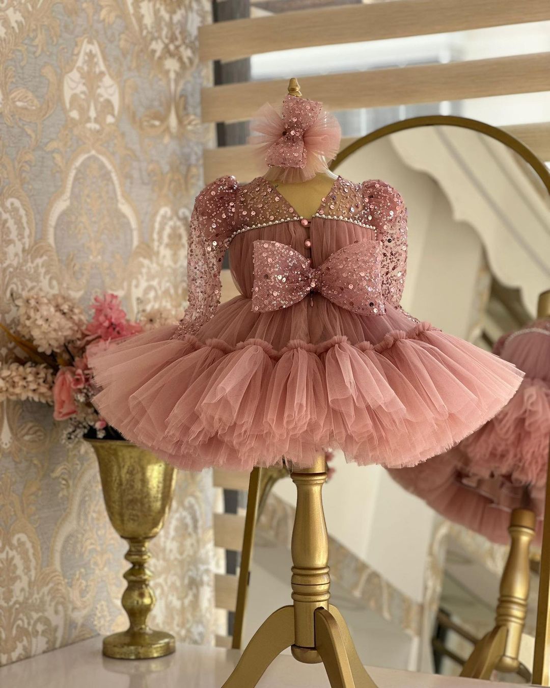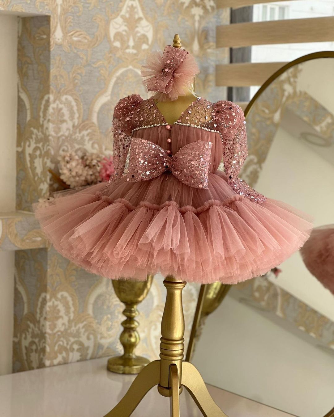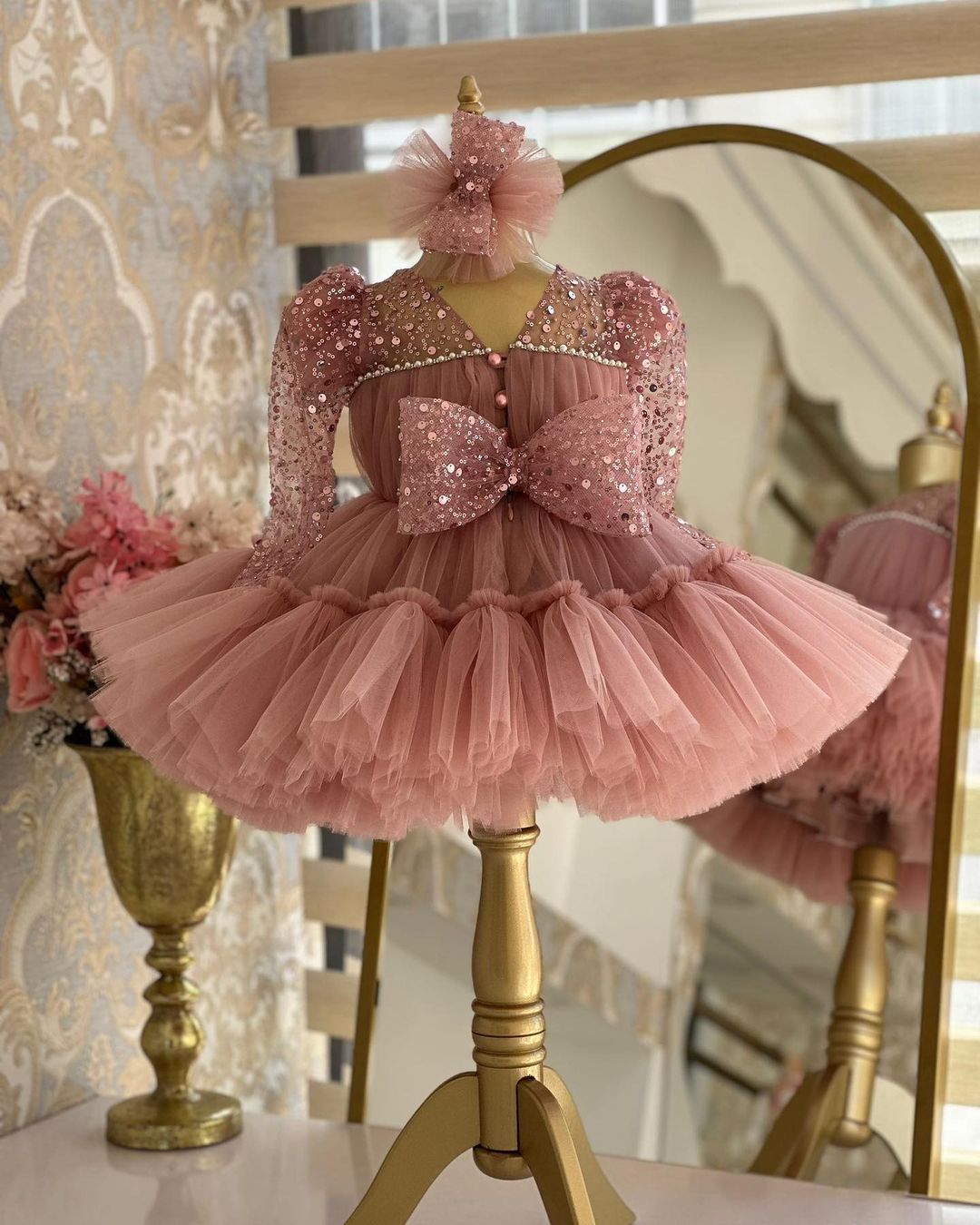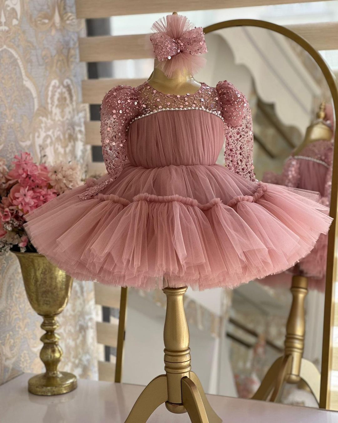 Beautiful onion pink coloured flower girl dress for beautiful princess