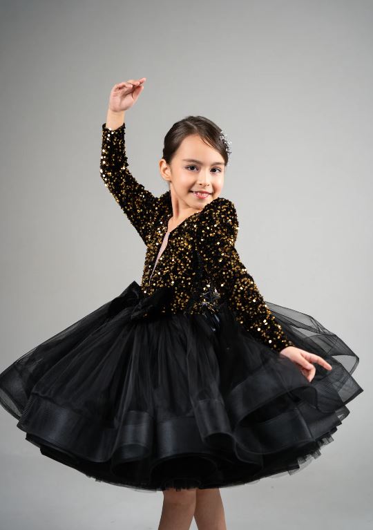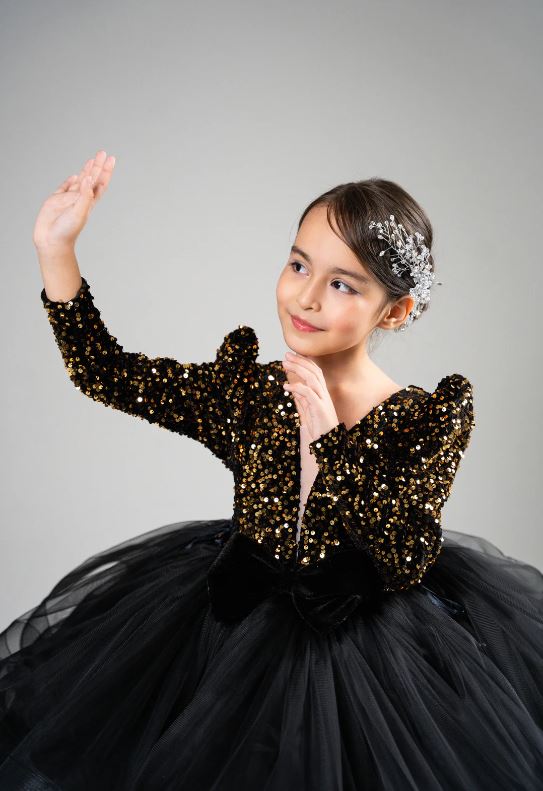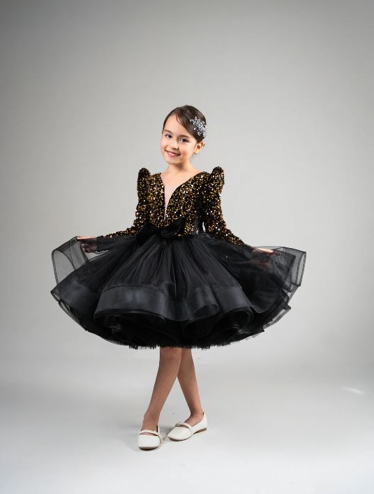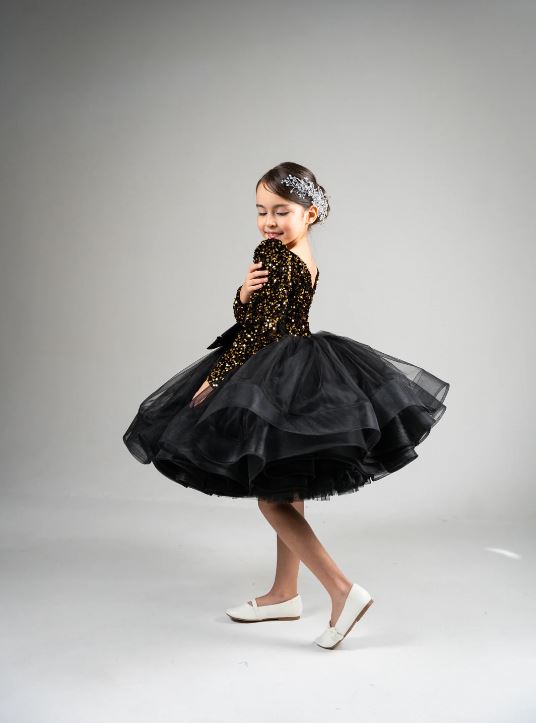Beautiful black coloured flower girl dress for beautiful princess