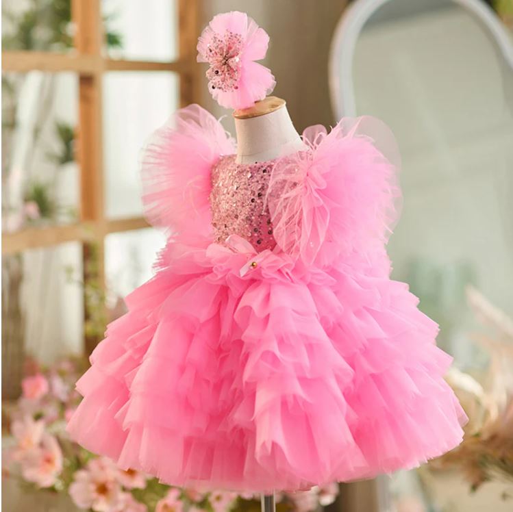 This dress is made of soft satin and net. Multiple layers of clothing is provided in this dress to provide natural balloon effect