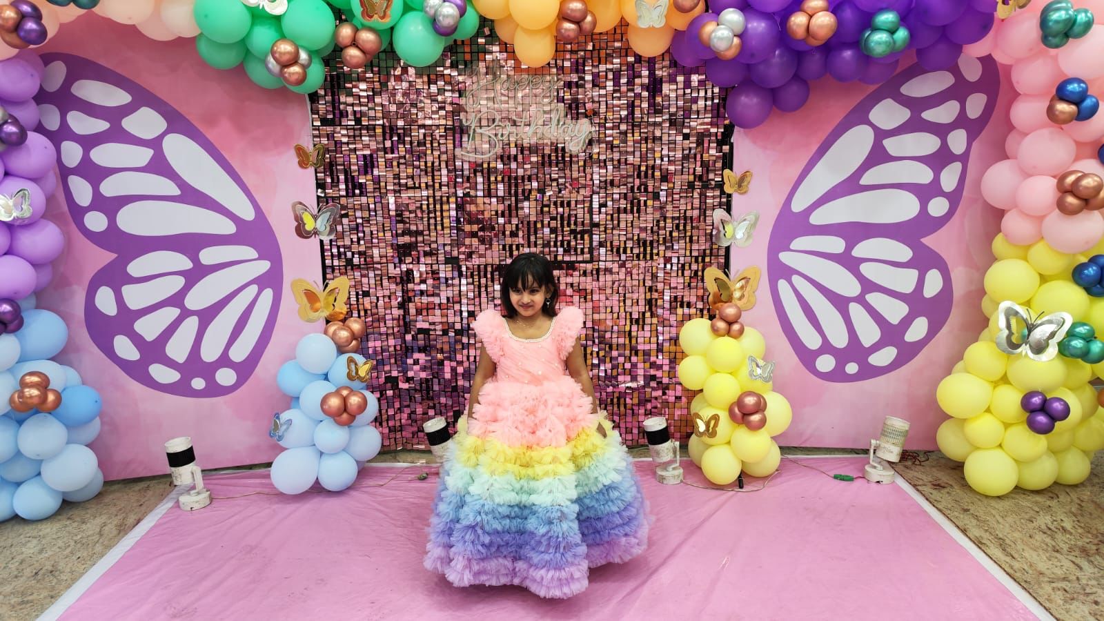 Multicolour Beaded Neck Puff Shoulder Birthday Party Dress