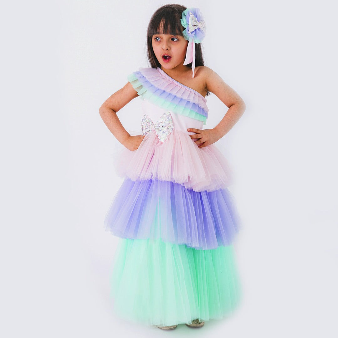 Multicolour Rainbow Unicorn Styled Birthday Party Dress