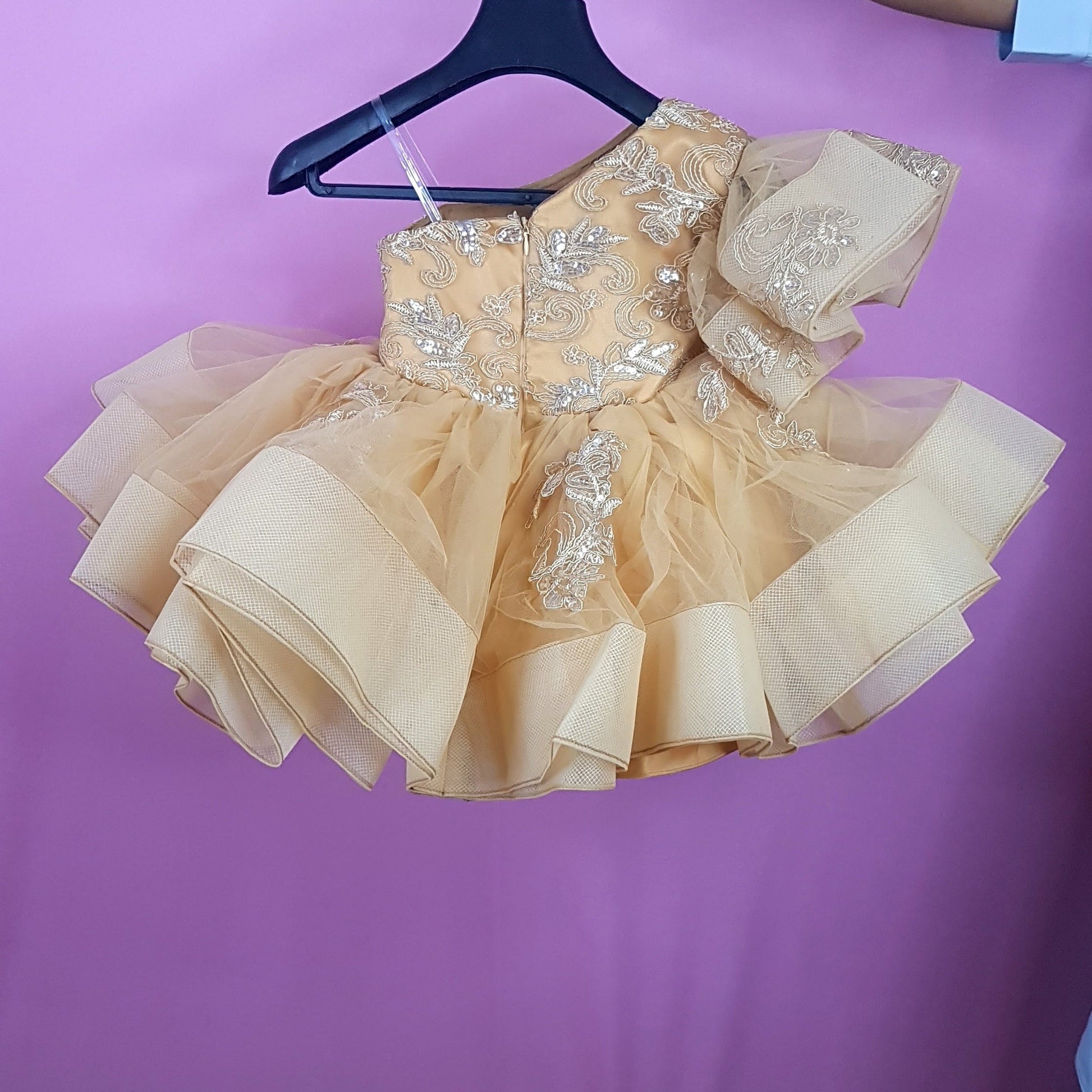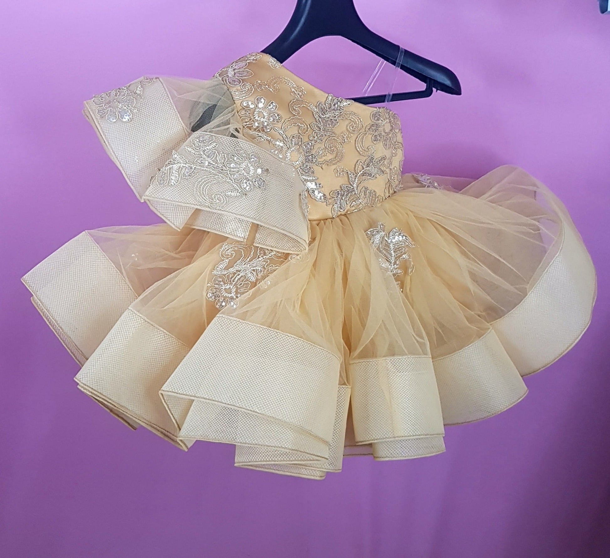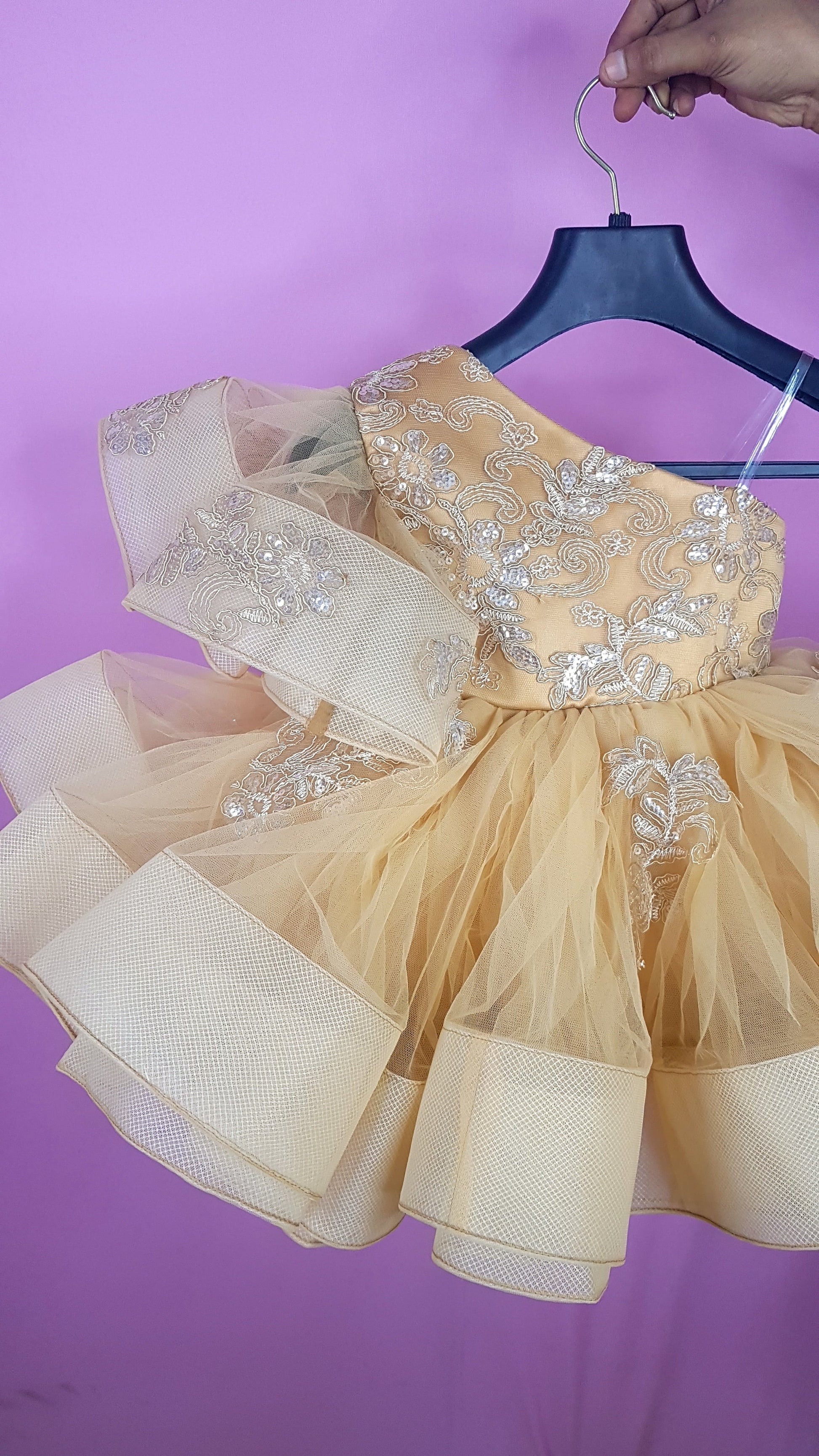 This dress is made of soft satin and net. Multiple layers of clothing is provided in this dress to provide natural balloon effect